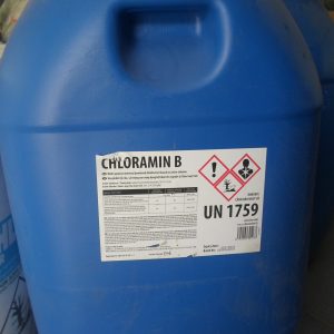 – Chất khử trùng diệt khuẩn – chloramin B là một hóa chất được sử dụng chủ yếu trong lĩnh vực xử lý nước, cụ thể là khử trùng nước sinh hoạt. Tính oxy hóa mạnh của Chloramine B giúp nó diệt trừ các loại vi khuẩn có hại cho da, cho đường ruột, mắt… tồn tại trong nước. – Cloramin B còn được sử dụng để khử trùng nguồn nước ở các vùng sau lũ lụt, vì nguồn nước này đã bị nhiễm bẩn bởi thời gian lũ lụt, nước này rất bẩn và chứa rất nhiều các vi khuẩn có hại gây bệnh cho người nếu sử dụng một cách bừa bãi. – Ở một liều lượng quy định thì Cloramin B có tác dụng trong việc sát khuẩn làm sạch nước, tuy nhiên nguồn nước cần được làm sạch từ từ, không nên vì sự thiếu hiểu biết hay tham lợi nhuận cũng như sự bất cẩn mà gây ra những tai nạn không đáng có vì Cloramin B sẽ gây hại cho da, mắt và hệ hô hấp nếu tiếp xúc hay hít phải với một lượng vượt chỉ tiêu cho phép. – Ngoài ra thì Chloramine B ở tỷ lệ pha loãng phù hợp còn có tác dụng sát khuẩn cho vết thương, có thể dùng để tẩy các vết ố vàng cho các thiết bị trong phòng thí nghiệm, sàn nhà, dụng cụ y tế… Nhưng sau đó các bề mặt này phải được rửa sạch lại bằng nước trước khi sử dụng. |